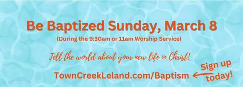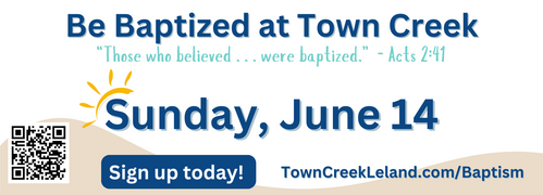 In keeping with the pattern we see in the Bible, you should be baptized as soon after believing in Jesus as possible (see Acts 2:41; 8:35-38; Acts 16:31-34). So, if you haven't yet been baptized as a believer in Jesus, then Baptism is your next step! Use the form below to sign up for Town Creek's next baptism.